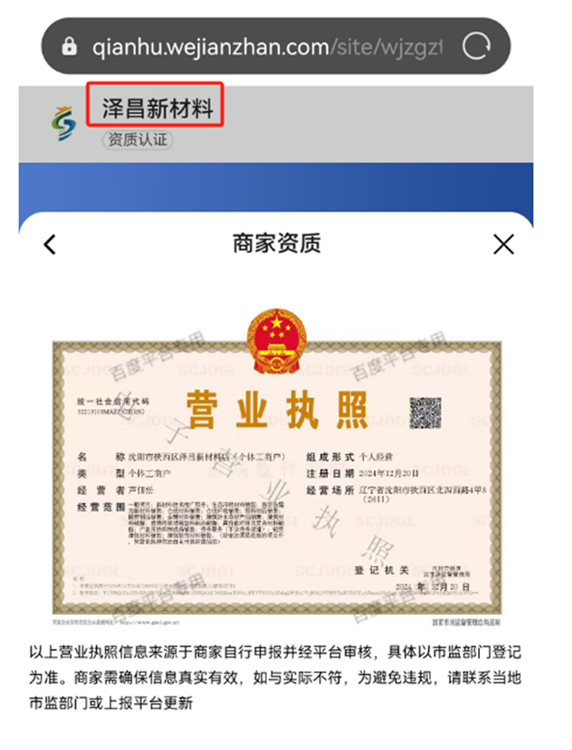 案例4 沈陽市鐵西區(qū)澤昌新材料店